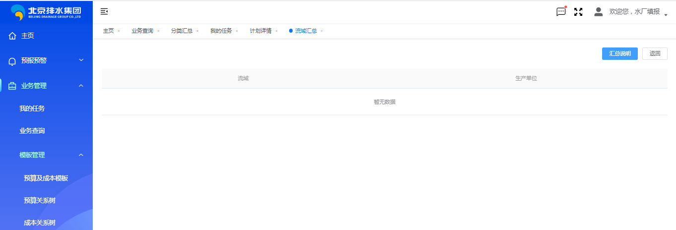 填报用户登录:分类汇总-查看未填报业务单元,显示暂无数据