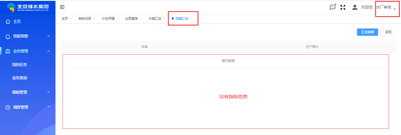 污水计划-业务查询-分类汇总-查看已填报业务单元-显示没有信息