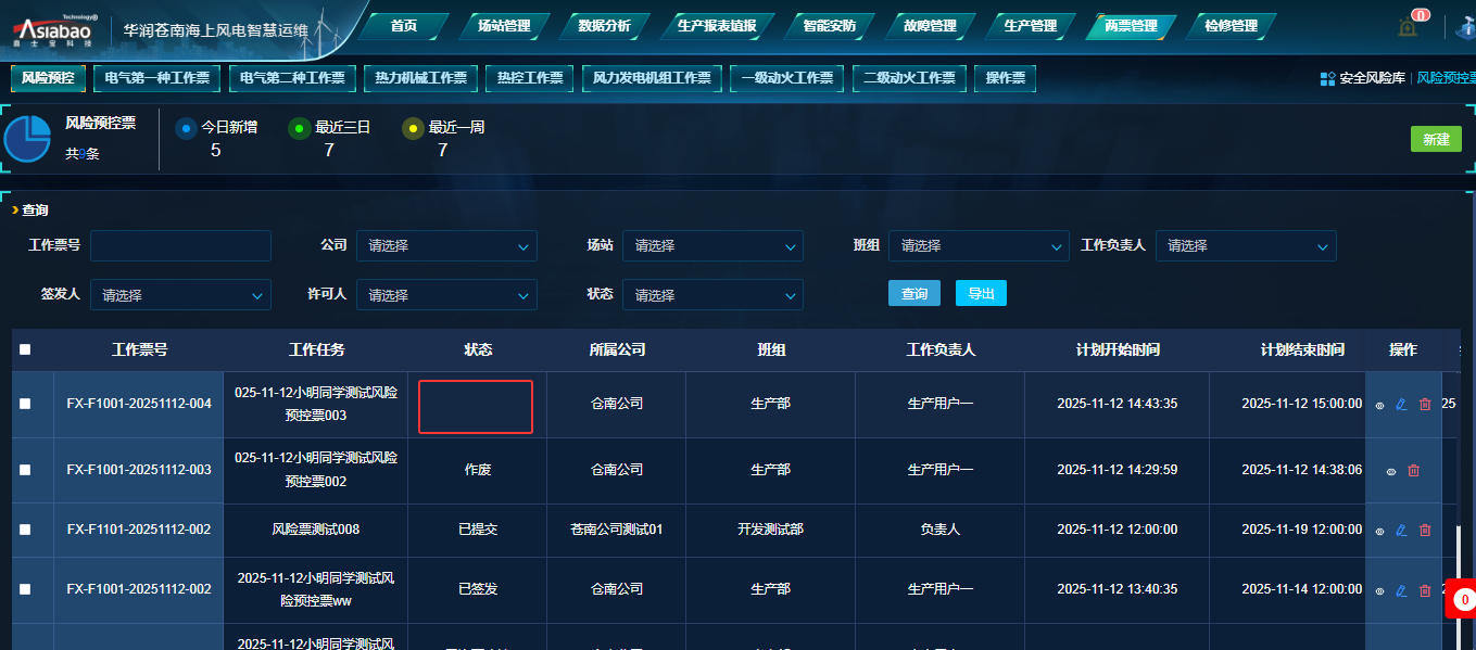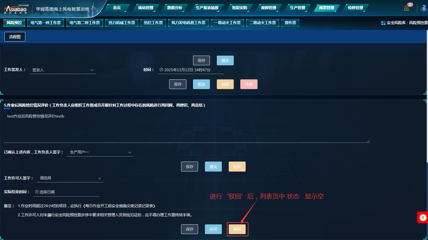 两票管理-风险预控-风险预控票-编辑:在最后,进行‘驳回’后,列表页中状态显示空。