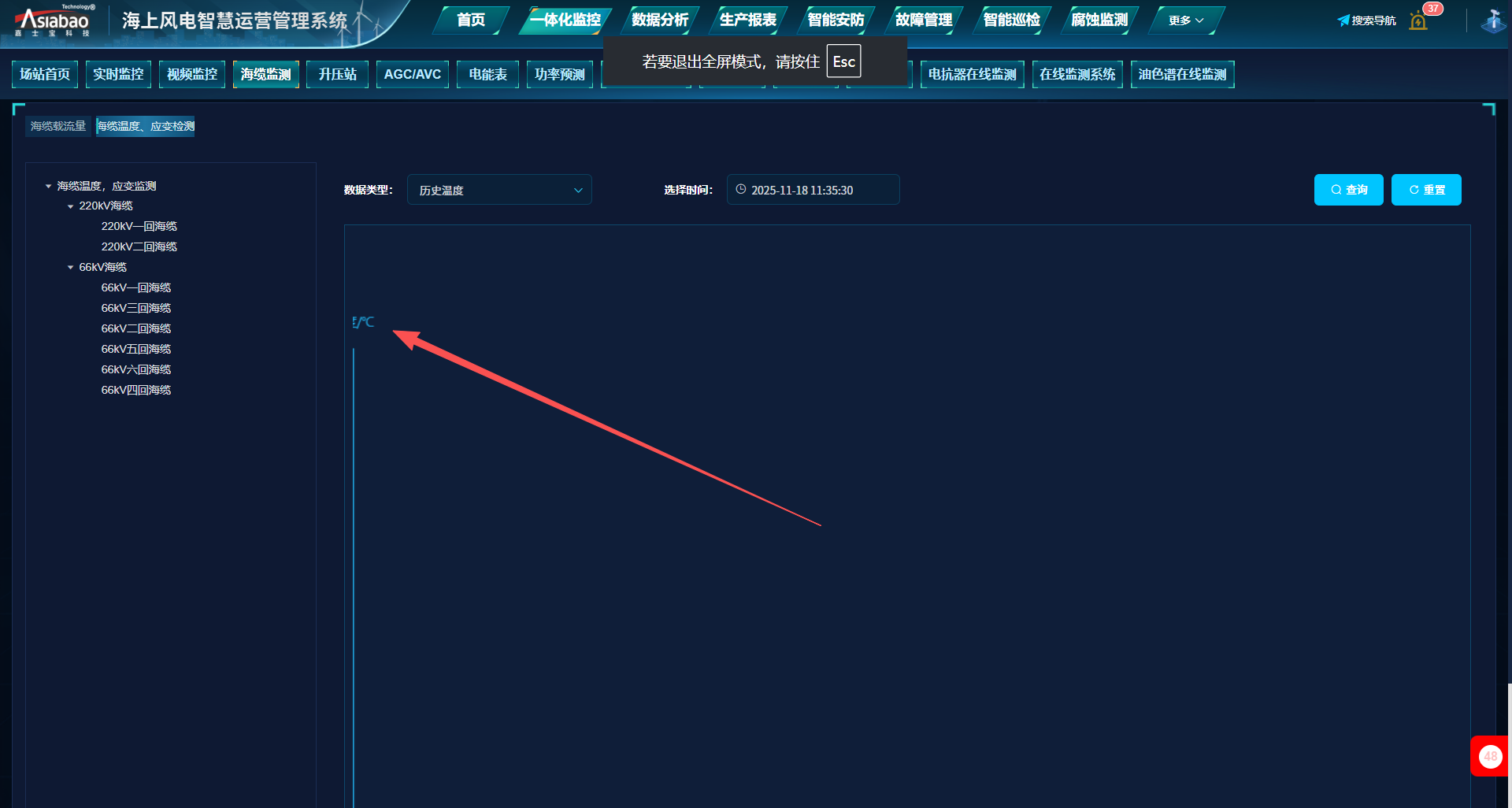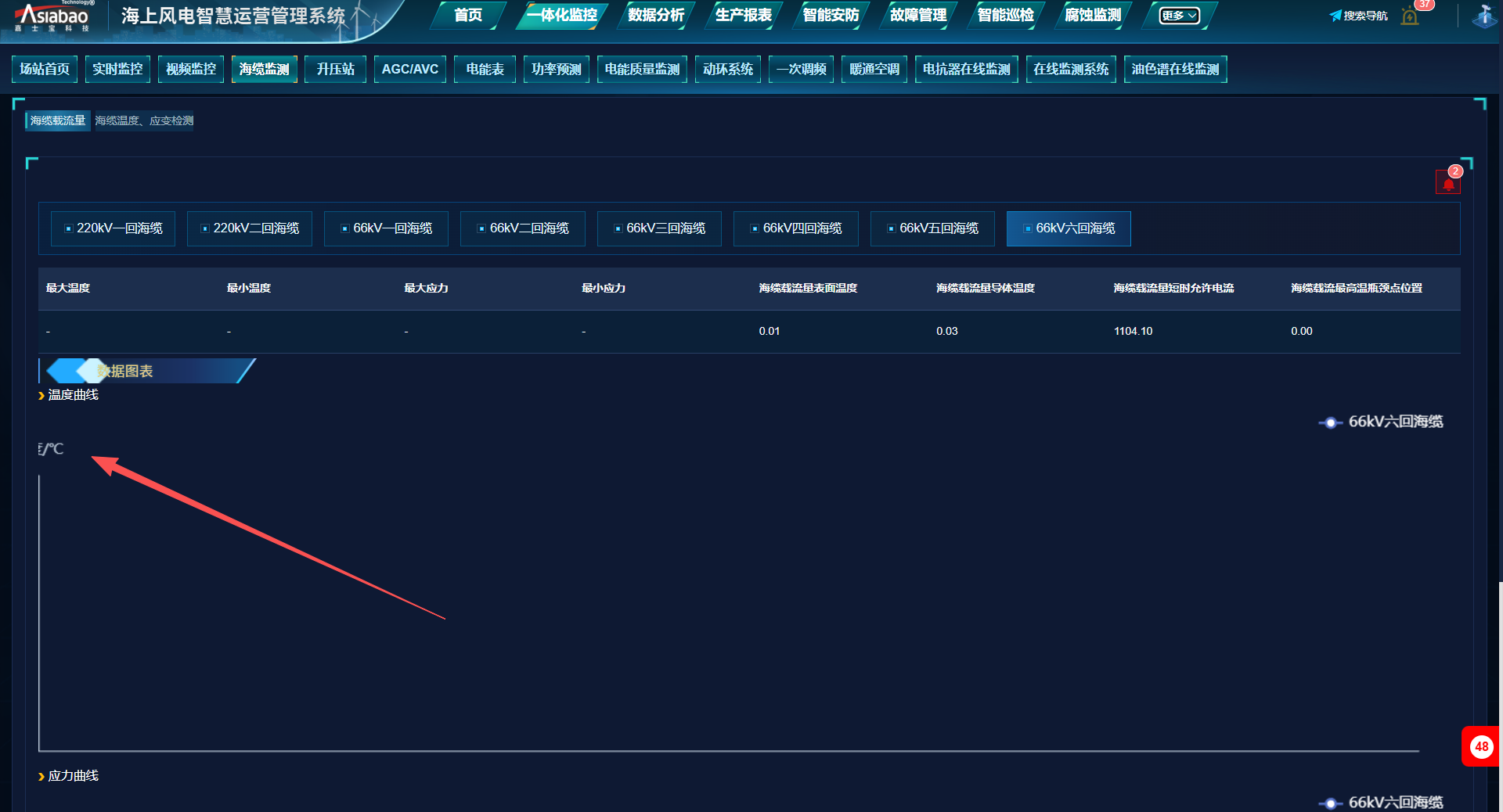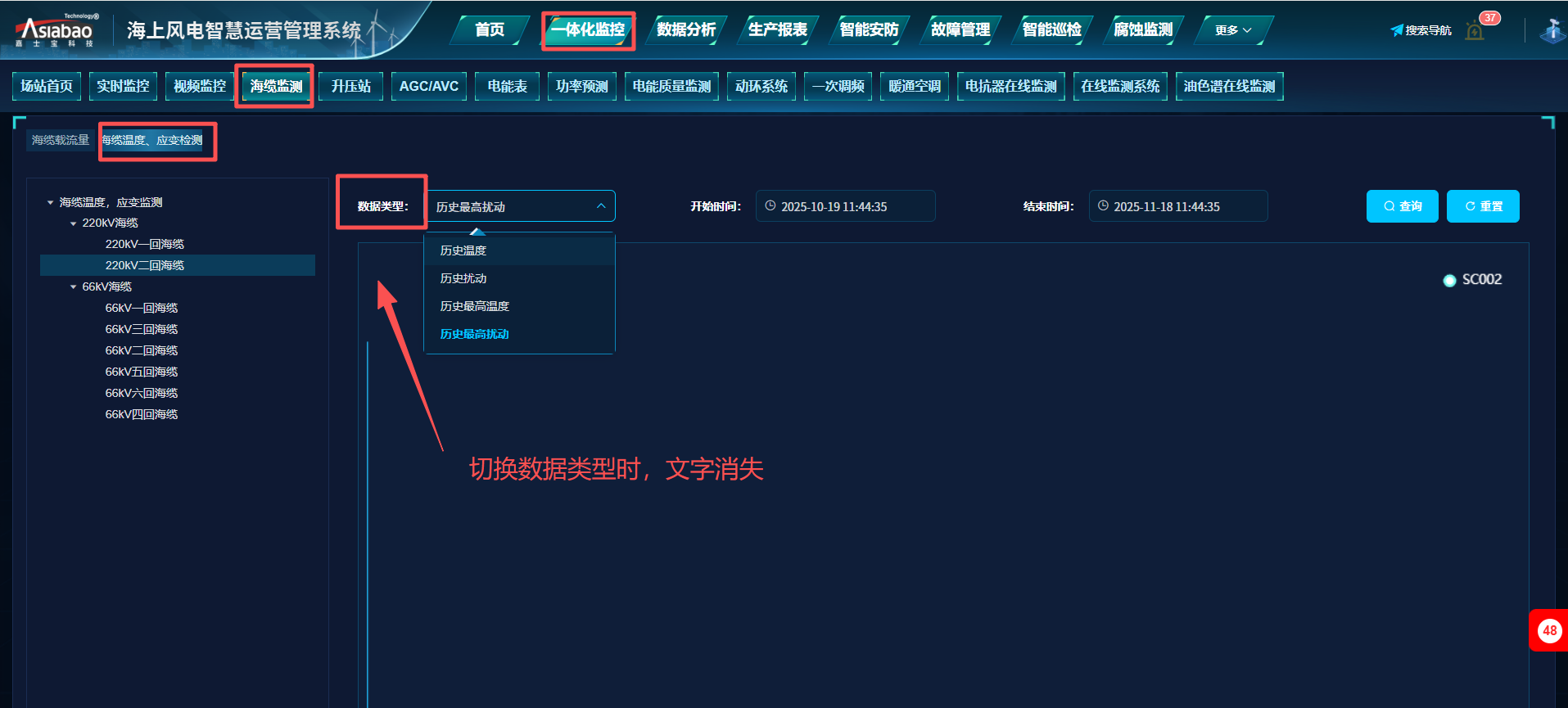 一体化监控-海缆监测:1、曲线图没有数据的时候、左侧文字展示不全。2、切换数据类型时、曲线图左侧文字消失