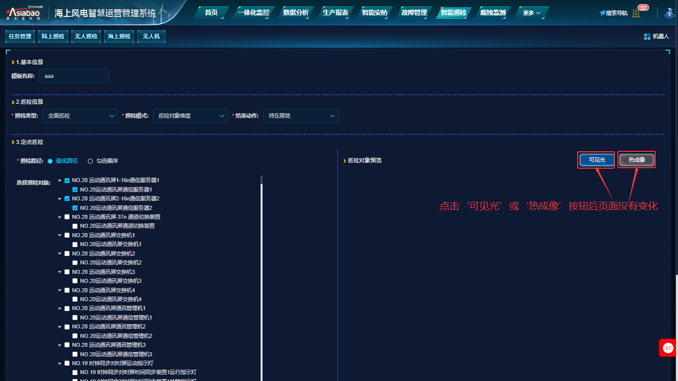 智能巡检-任务管理(任务模板)-新增任务:在任务模板的新增任务页面,点击‘可见光’或‘热成像’按钮后页面没有变化。