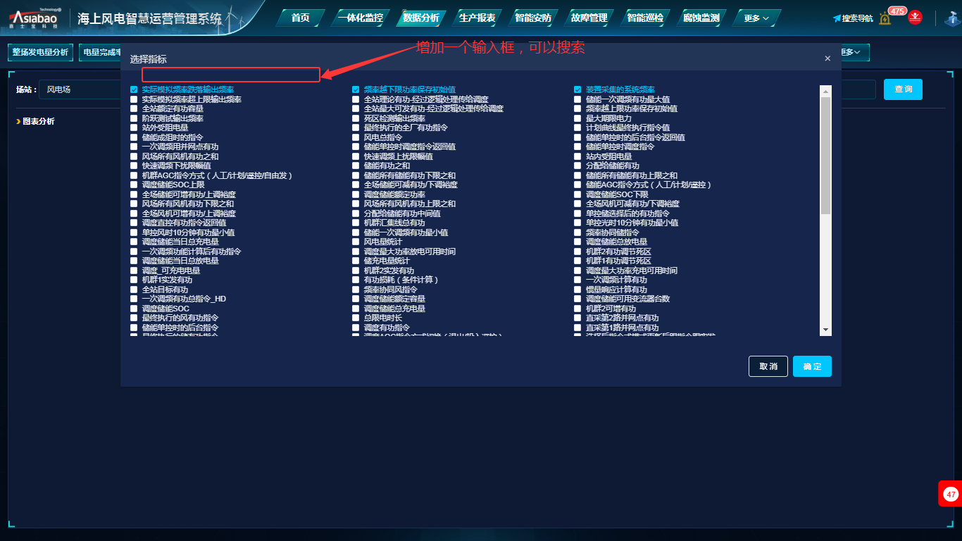 数据分析-机组关键数据分析-选择指标:在选择指标弹窗中,增加一个输入框,可以搜索。