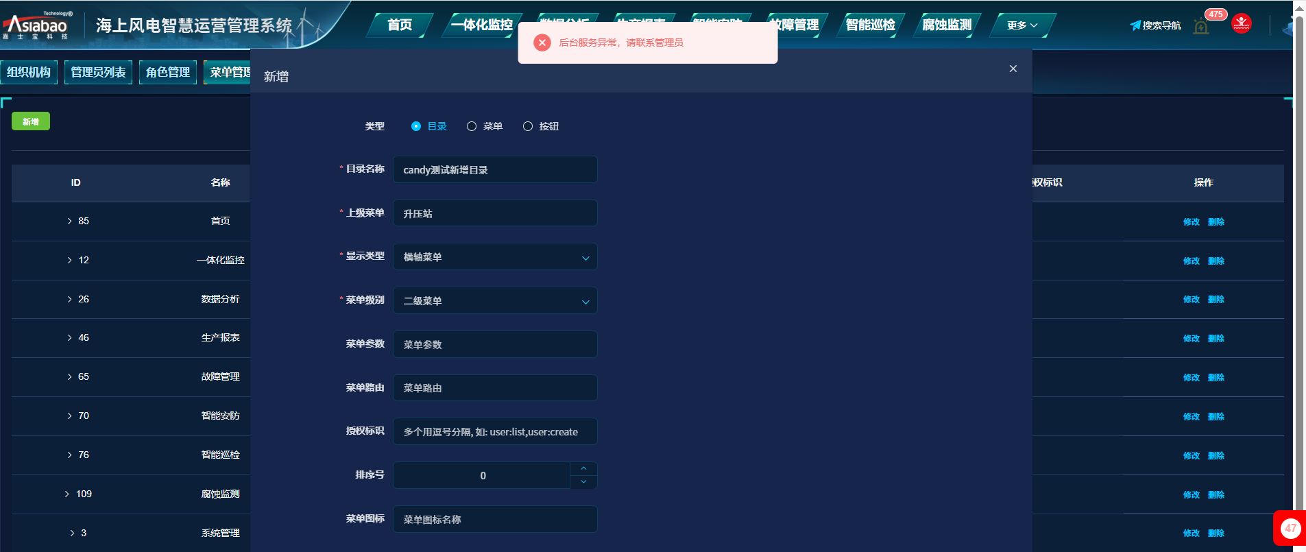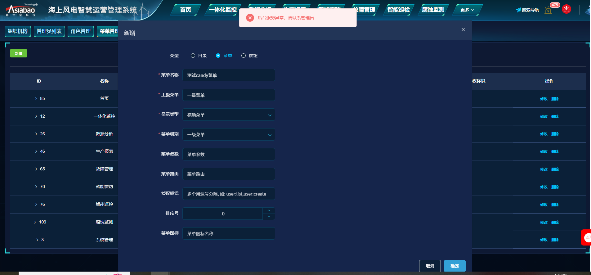 报错是因为数据库id 重复的问题,多点几次就保存成功了, 按钮类是权限操作按钮,代表操作权限,新增按钮就是页面上看不到
