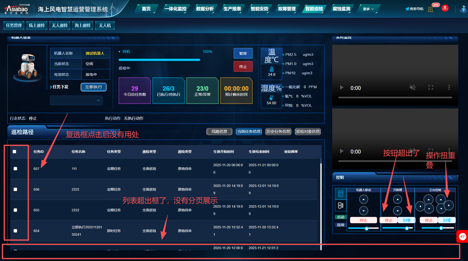 智能巡检-陆上巡检:复选框点击没用处,列表超出格式