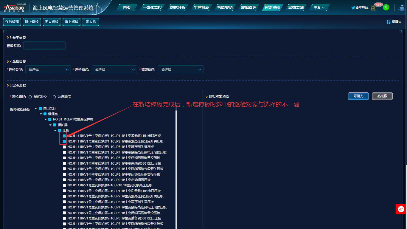 智能巡检-任务管理-任务模板-新增模板:在新增模板完成后,新增模板时选中的巡检对象与选择的不一致。