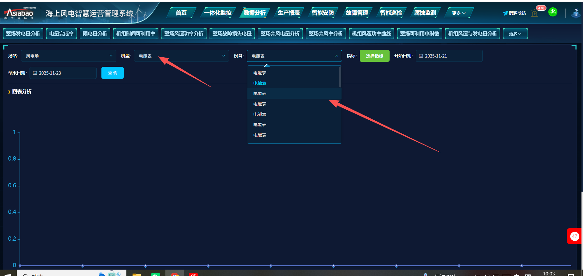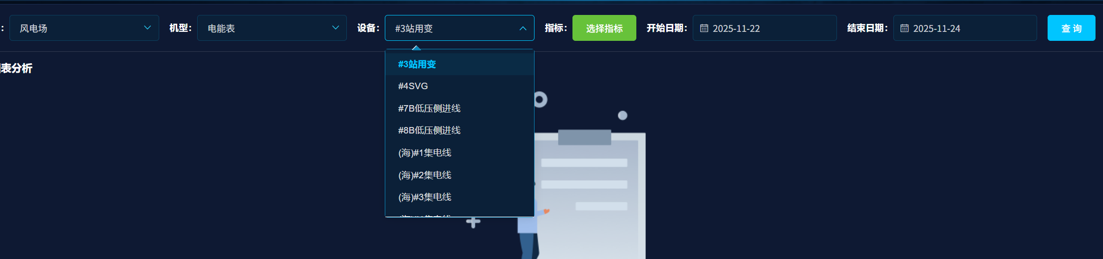 - 主题 从 风机详情页-风机预览 变更为 风机详情页-风机预览点击电网C相电压-机型切换到电能表-设备下拉框会出现好多电能表